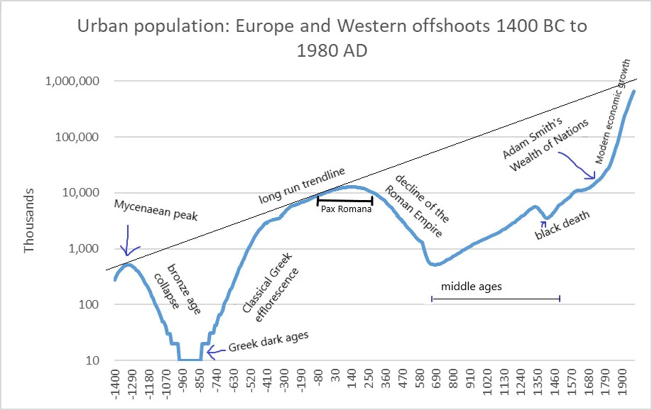This graph of European urban population over history shows some dramatic declines, suggesting that there may have been historical analogue to our upcoming world population decline. And there have long been rumors that at least elites often had low fertility. Searching for quotes, I’ve found these: