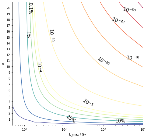 However, in another appendix of Cook’s paper, “Varying the prior on Lmax”, he also considers a wider prior on Lmax. (He retains all his other prior choices, including a prior on n with median 1.) Namely a lognormal with a median of 500 Gyr and a one sigma range of 110 to 2200 Gyr. His posterior from this has a median Lmax of 7Gyr, and a 90th percentile at ~100 Gyr. Which means that compared to Cook’s prior on Lmax, his posterior has substantially lower values of Lmax. Does this prove his claim that high Lmax is incompatible with high n?