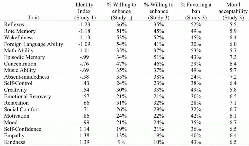 I consider my ranking in empathy and kindness to be well below average. And I have no desire to increase my kindness and empathy. Perhaps the survey indicates exactly what people what to enhance and that which people do not want to enhance. The only items I would flip on this list are motivation and rote memory. Rote memory is declining in value while motivation will never decline in value.