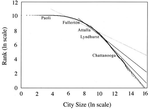 If you take a closer look at the whole thing, there are more than 20 % of the population missing in the plot. Most (european) countries do not accept "cities" with less than 2 - 5000 people, cutting off the left 2/3 of the data points, or half the ln size distribution. On the right side, as the paper states, he takes the smaller US size definition, putting LA at 3.7 Mio, instead of 16 Mio with the definition closer to european views, and strong deviation from a log normal or Zipf distribution. That leaves than the transition region for fitting, and you can do this in many ways. You can even find on the homepage of the author some comment exchange in 2009 with Levy on this. Beyond that, if you look up data on "urbanization", (e.g. CIA, wiki) you will find that over 50 % of the differences are due to different definitions of "city" (see German wiki "Stadt": DK: 200; JP 50 000)