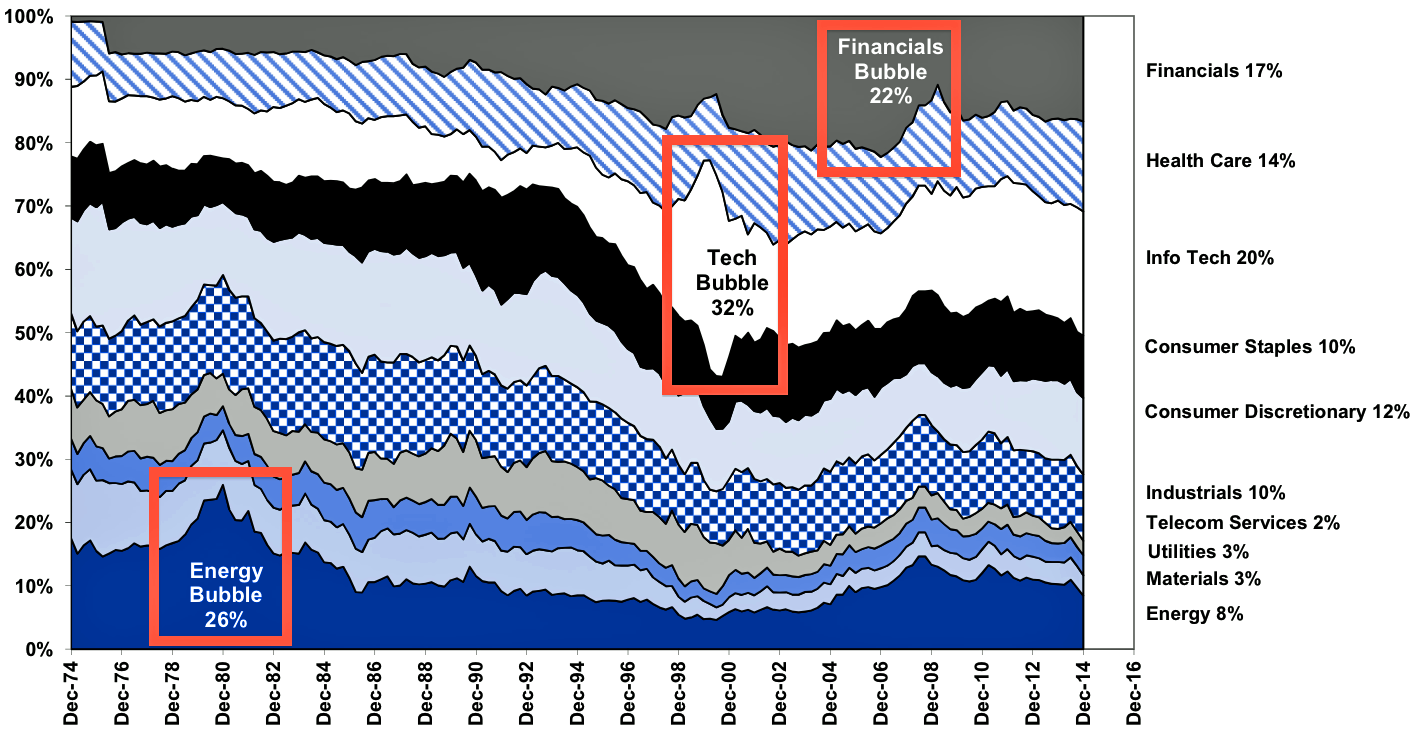This post is from about 2 years ago; I'm writing in June 2017. I haven't crunched the numbers, but from recent valuations I would expect that the tech sector has recently grabbed a much larger share of the stock market pie. Do you think there's evidence for a tech bubble right now?