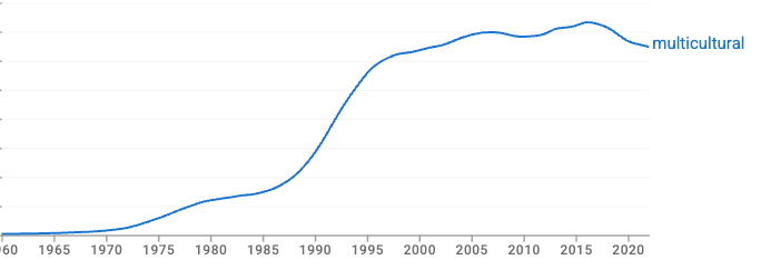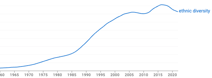 Ngram shows how often words and phrase are used in English books over time. “Diversity” has been rising steadily since 1960: