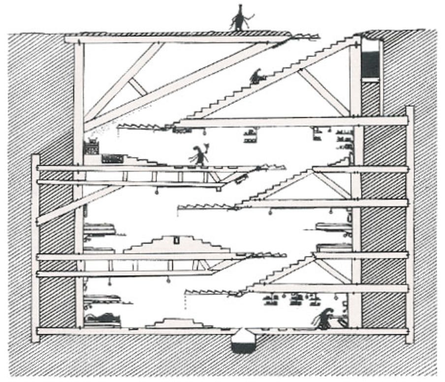 Yet the entire planet has only 25,000 people, the biggest city has 6000 people, and the biggest research city has 1000 people supporting 50 scientists. Info is only written in books, which have a similar number of pages as ours but only one short sentence per page. Each building has less than ten rooms, and each room can fit only a couple of people standing up, and only a handful of books or other items. In terms of the space to store stuff, their houses make our “tiny houses” look like warehouses by comparison. (Their entire planet has fewer book copies than did our ancient Library at Alexandria.)